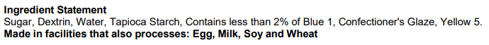 Allergens/Claims: Gluten free, Trans fat free, No hydrogenated oils, Kosher, Dairy free