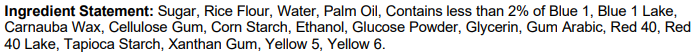 Claims: Gluten free, Trans fat free, No hydrogenated oils, Kosher, Dairy free, No artificial colors, RSPO Available