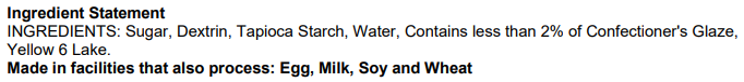 Allergens/Claims: Gluten free, Trans fat free, No hydrogenated oils, Kosher, Dairy free