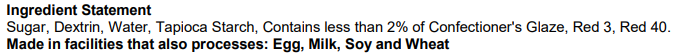 Allergens/Claims: Gluten free, Trans fat free, No hydrogenated oils, Kosher, Dairy free